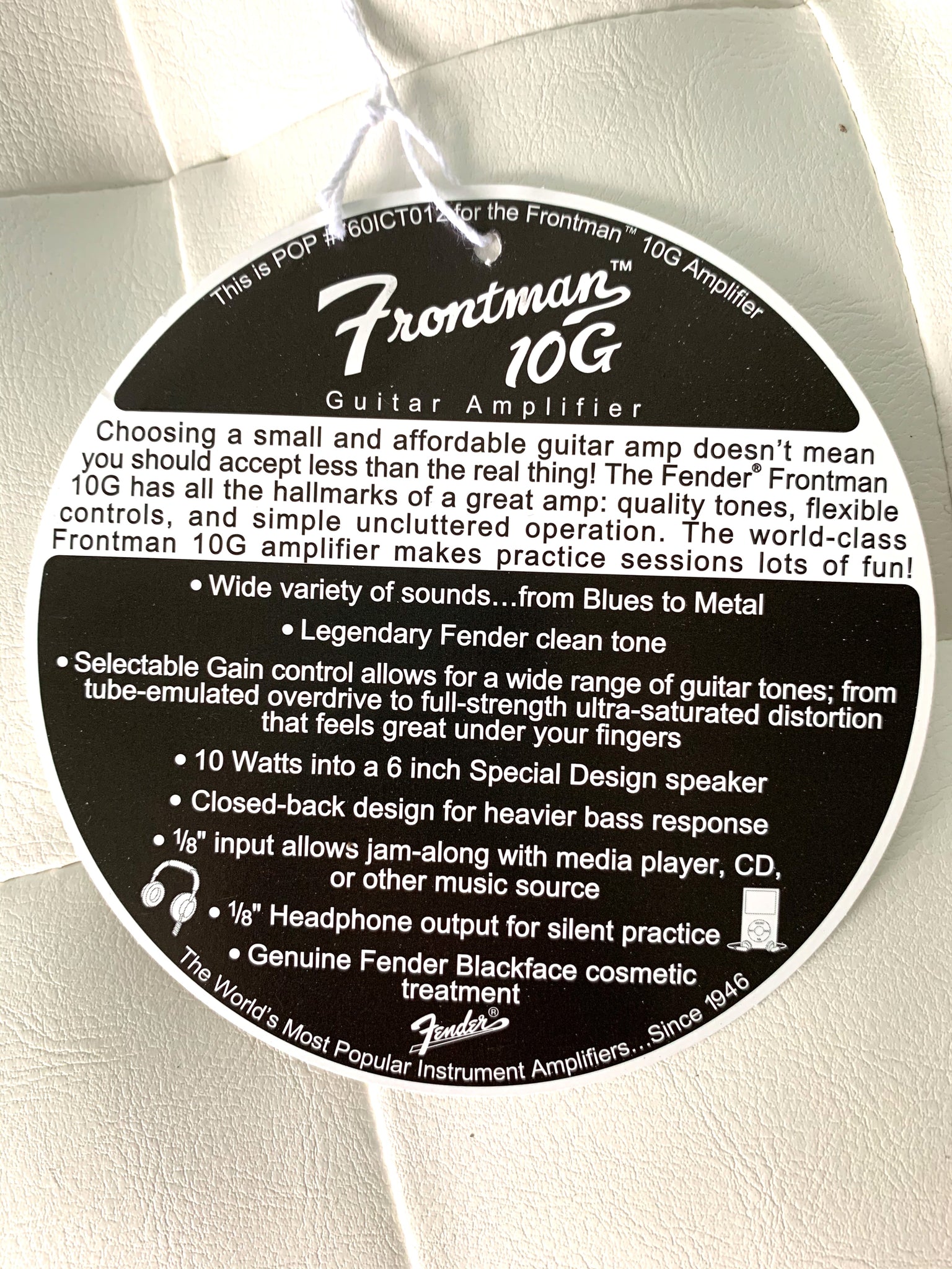 For the beginning electric guitarist or anyone who wants a small, easy-to-use practice amp with quality tone and a great price, the Frontman 10G is at your service. Conveniently compact and built with classic Fender style, it delivers full sound from its 6" speaker, with a gain control and overdrive switch that rock guitar tones from tube-emulated overdrive to full-strength ultra-saturated distortion—perfect for blues, metal and famous Fender clean tone.